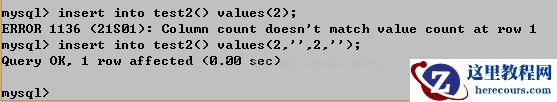 从图中可以看出,插入时不需要每个字段都有值(在没有相关的约束前提下),但是需要注意的是字段的数量和后边的值的数量必须一致,还要和自定的字段的顺序一致,类型也要一致,否则会报错。另外,如果没有指定任何字段的情况下,默认是选择了所有字段,则必须每个字段都有对应的值,并且需要和表中的字段顺序一致,否则会报错,如图: