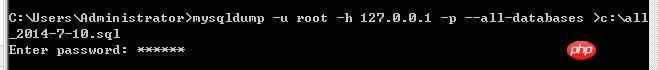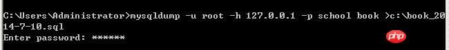 mysqldump -u root -p booksdb >c:\booksdb_2014-7-1.sql