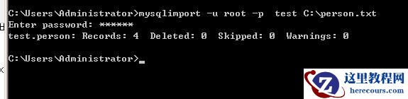 使用mysqlimport命令将C:\目录下person.txt文件内容导入到test库