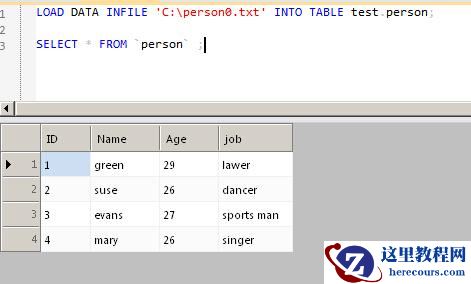 LOAD DATA INFILE 'C:\person0.txt' INTO TABLE test.person