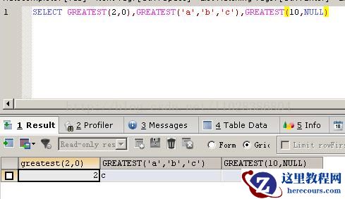 假如任意一个自变量为NULL,则GREATEST()的返回值为NULL