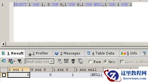 '1 XOR NULL'中有一个操作数为NULL,返回结果为NULL;