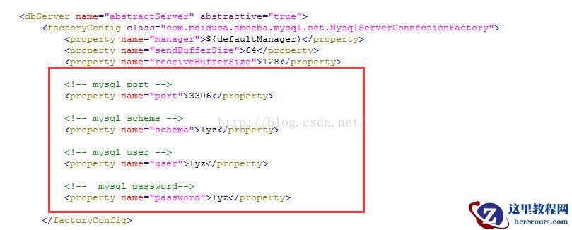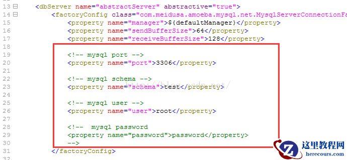 我们在这里进行相关数据库的配置,要注意:这些数据库的配置指定要读写分离的数据库、用户名、密码,其中用户名和密码是配置成在终端访问Amoeba的用户名和密码。我修改后的效果如下: