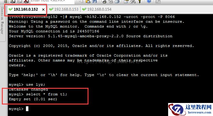 我们在192.168.0.152上输入如下命令登录Amoeba,通过Amoeba访问数据库