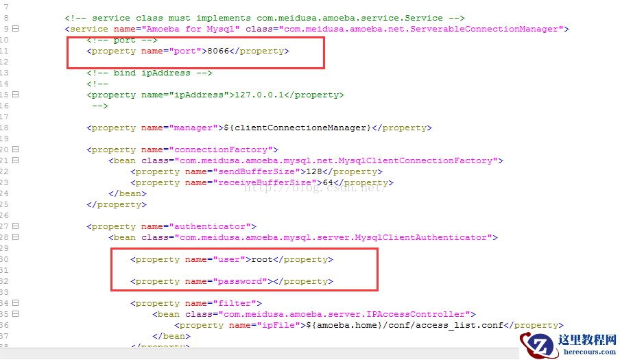 我们配置好用户名和密码,其中8066是Amoeba默认端口,配置好的效果如下: