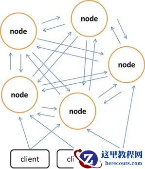 相较于Memcached只能采用客户端实现分布式存储,Redis更偏向于在服务器端构建分布式存储。最新版本的Redis已经支持了分布式存储功能。Redis Cluster是一个实现了分布式且允许单点故障的Redis高级版本,它没有中心节点,具有线性可伸缩的功能。下图给出Redis Cluster的分布式存储架构,其中节点与节点之间通过二进制协议进行通信,节点与客户端之间通过ascii协议进行通信。在数据的放置策略上,Redis Cluster将整个key的数值域分成4096个哈希槽,每个节点上可以存储一个或多个哈希槽,也就是说当前Redis Cluster支持的最大节点数就是4096。Redis Cluster使用的分布式算法也很简单:crc16( key ) % HASH_SLOTS_NUMBER。