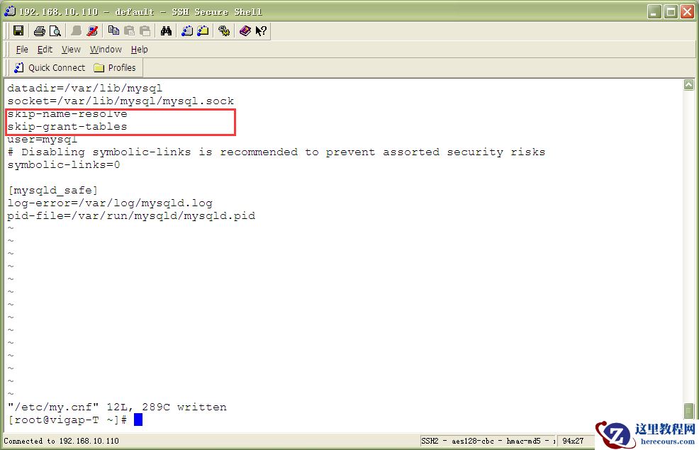 [mysqld] datadir=/var/lib/mysql socket=/var/lib/mysql/mysql.sock skip-name-resolve skip-grant-tables