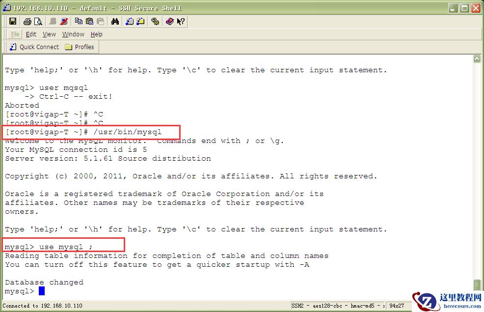 3、ctrl+T重开一个终端以root身份登录mysql。