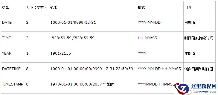 表示时间值的日期和时间类型为DATETIME、DATE、TIMESTAMP、TIME和YEAR。