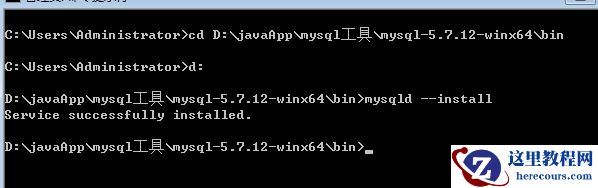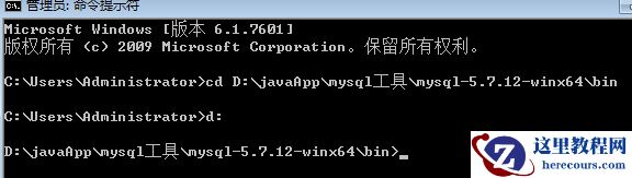 例如:cd D:\javaApp\mysql-5.7.12-winx64\bin; 在 d:切换下盘符