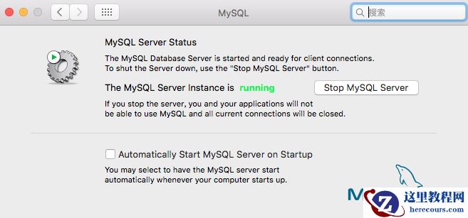 安装结束后,在系统偏好设置中能找到MySQL,打开并运行。