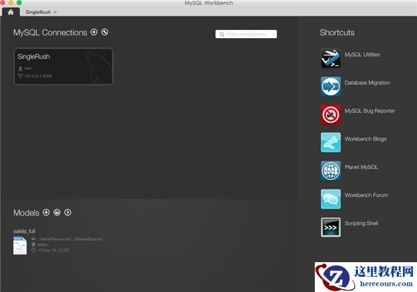 打开后请看主界面,主界面中的MySQL后跟着两个按钮:第一个加号按钮表示new MySQL Connection新建,第二个表示Edit MySQL Connections修改。