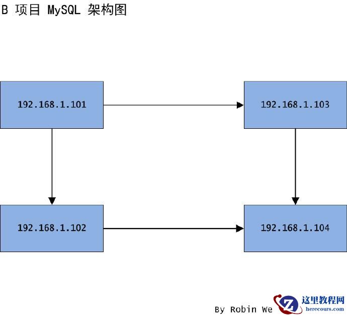 我们知道一主一从只迁移从库怎么做之后,接下来看看怎样同时迁移主从节点。因不同业务同时访问同一服务器,导致单个库压力过大,还不便管理。于是,打算将主节点 101 和从节点 102 同时迁移至新的机器 103 和 104,103 充当主节点,104 充当从节点,架构图如图二。此次迁移只需要迁移指定库,这些库容量不是太大,并且可以保证数据不是实时的。