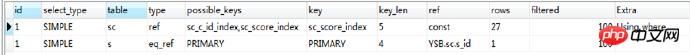 我们会看到,先提取sc,再连表,都用到了索引。