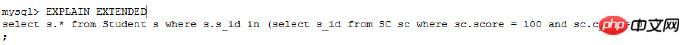 EXPLAIN select s.* from Student s where s.s_id in (select s_id from SC sc where sc.c_id = 0 and sc.score = 100 )