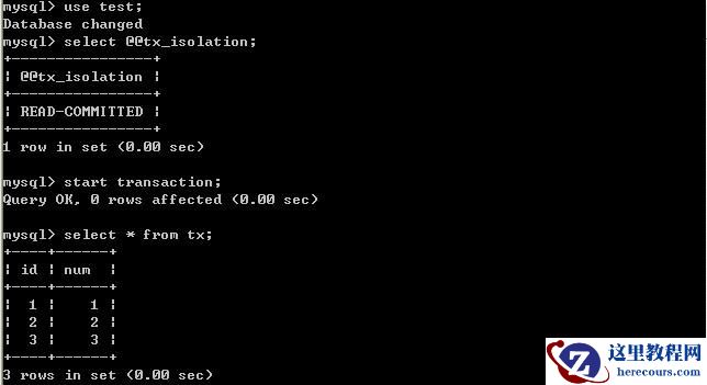 (二)、将客户端A的事务隔离级别设置为read committed(已提交读)