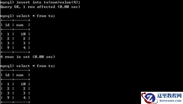 A端打开事务,B端插入一条记录