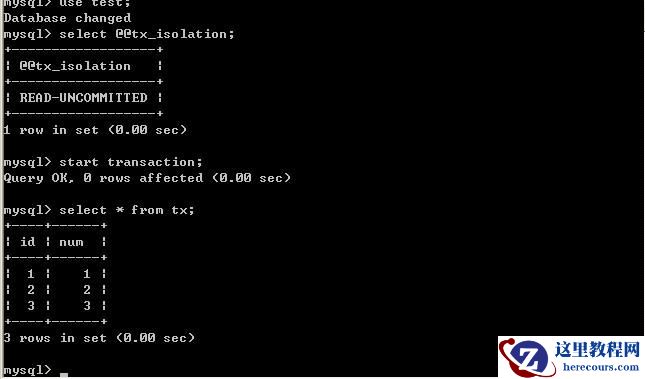 下面,将利用MySQL的客户端程序,分别测试几种隔离级别。测试数据库为test,表为tx;表结构: