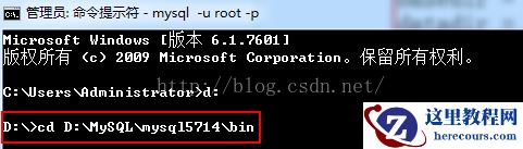 安装好MySQL5.7后,打开cmd命令窗口,并且进入到MySQL安装目录中的bin目录,然后输入如下命令回车即可: