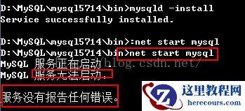 5.安装成功后运行net start mysql指令: