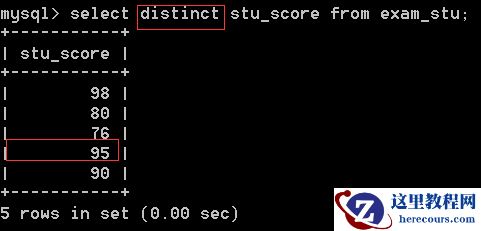 当语句是 select distinct stu_score时,当两条数据的stu_score相同时,认为二者重复;