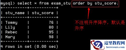 如果不注明升序、降序,默认使用升序: