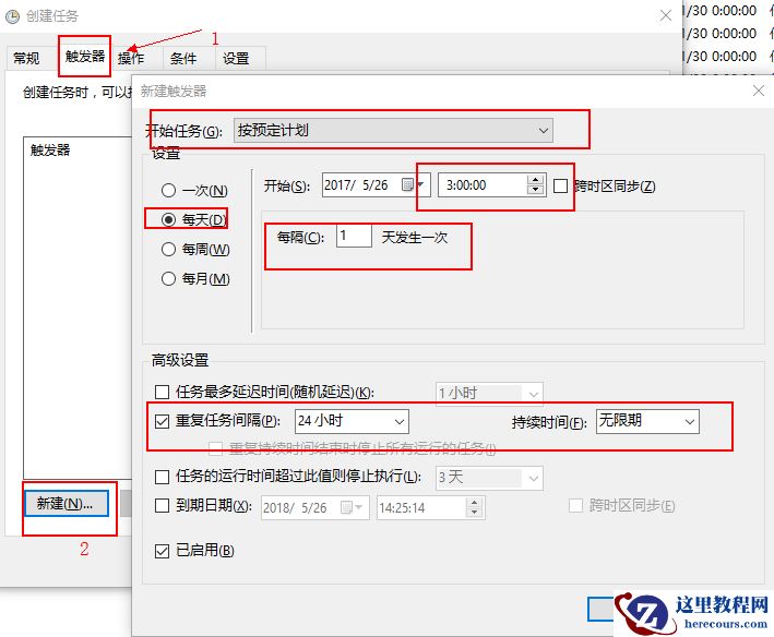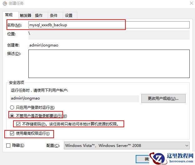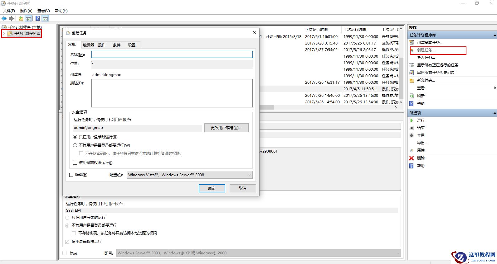 打开:控制面板->管理工具->任务计划程序->创建任务
