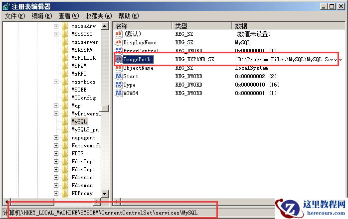 HKEY_LOCAL_MACHINE\SYSTEM\CurrentControlSet\services\MySQL