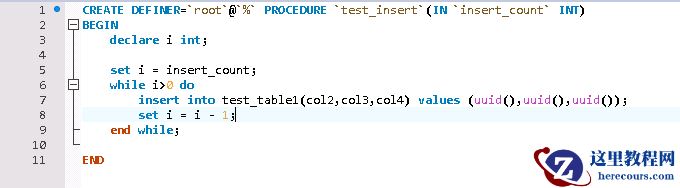 测试数据比较简单,通过存储过程循环写入测试数据,测试表的InnoDB引擎表。
