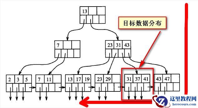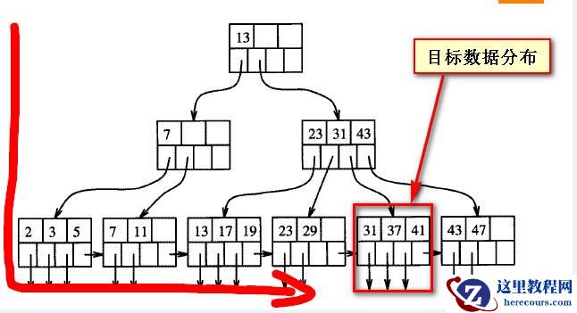 如下两个截图是B树索引结构的粗略表现形式,假如目标数据的位置固定的情况下,所谓的“靠后”是相对与从左向右来说的;