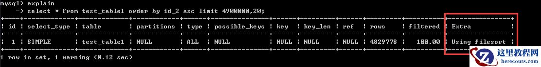 select * from test_table1 order by id_2 asc limit 4900000,20;执行时间为1分钟多一点,暂且认其为60秒