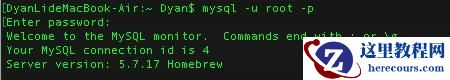 mysql -u username -p --退出 QUIT 或者 Control+D
