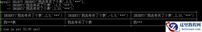 INSERT(s1,x,len,s2) 字符串替换 s1 目标字符串 x为s1的开始位置(下标从1开始) len为x之后的长度 s2为需要替换的字符串