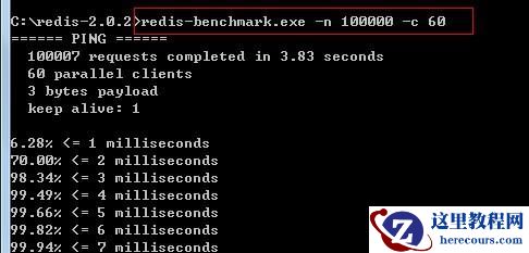 redis-benchmark.exe 性能测试,用以模拟同时由N个客户端发送M个 SETs/GETs 查询 (类似于 Apache的 ab 工具)
