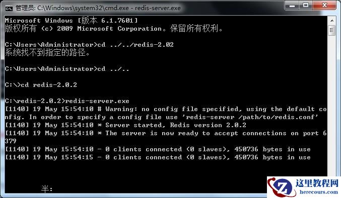 启动Redis服务(conf文件制定配置文件(redis-server.exe redis.conf ),若不指定则默认):