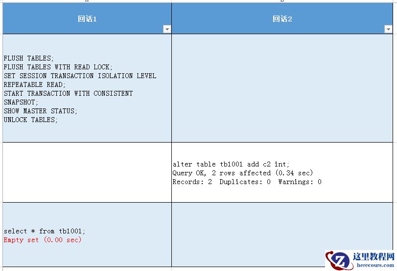 这也就合理解释我同事操作的现象:在mysqldump过程中,修改表结构,修改操作没有被阻塞,mysqldump操作也”正常完成“。