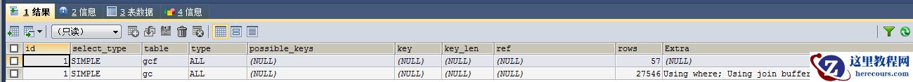 通过gcf表进行筛选的话,就会默认选择gcf表作为驱动表,因为很明显他进行过了筛选,匹配的条件会很少,具体可以看下执行计划: