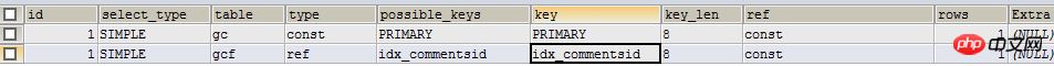EXPLAIN SELECT * FROM comments gc JOIN comments_for gcf ON gc.comments_id=gcf.comments_id;