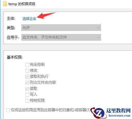 5)在弹出的窗口中,点击"选择主体"