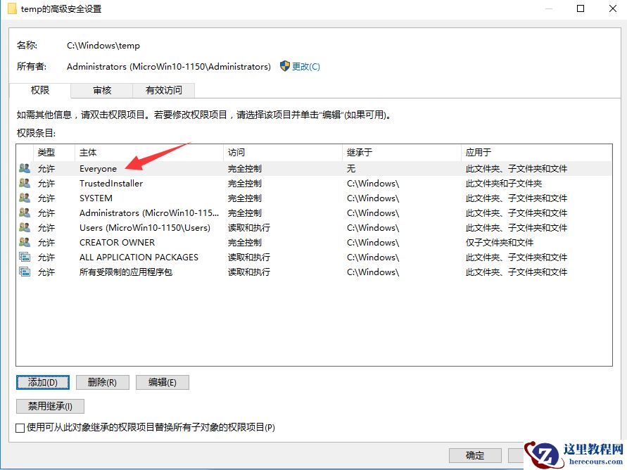 8)点击确定后,可以看到多出来了"Everyone"的信息