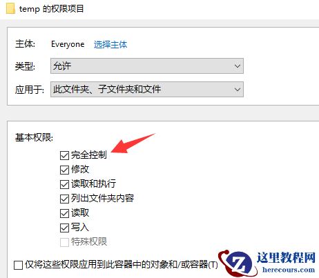 7)点击确定后,设置Everyone的基本权限为"完全控制"