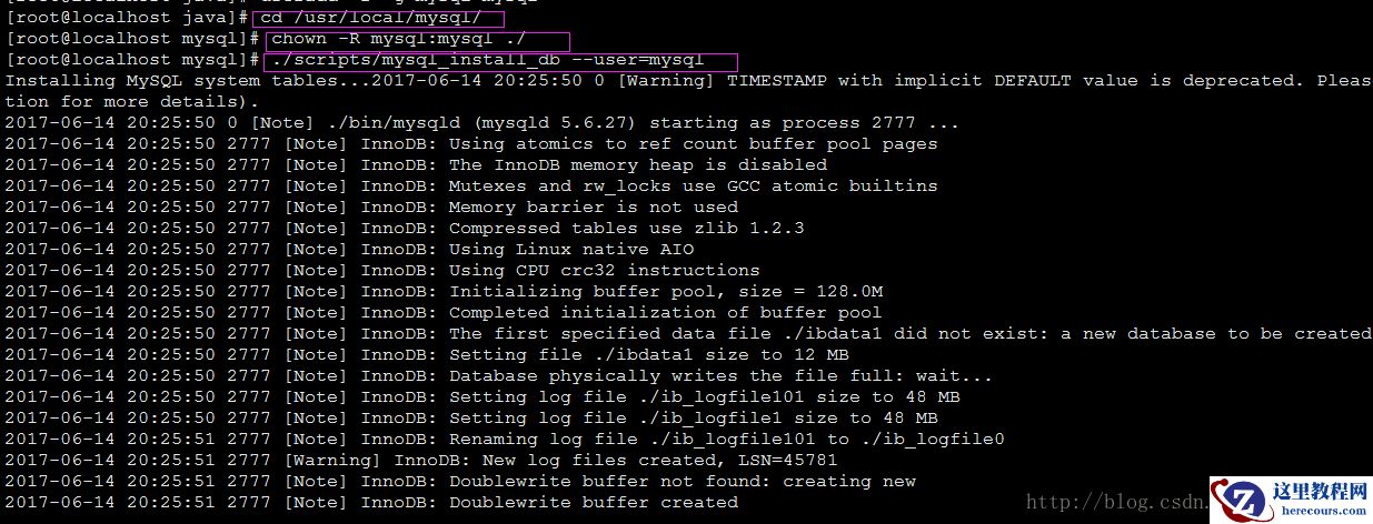 安装数据库:执行命令 ./scripts/mysql_install_db --user=mysql