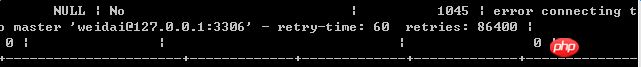 使用weidai这个账号无法连接到master,所以应该是没有获取到master的binlog,导致中继日志无法生成。