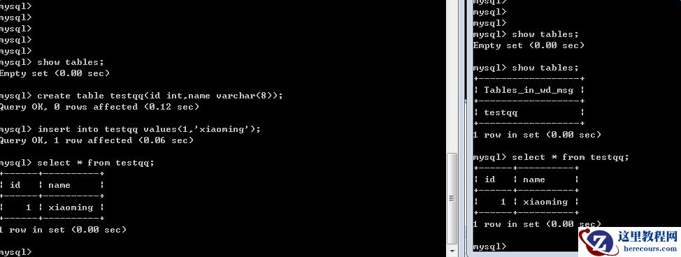 8、在master中创建表和新增数据,在slave中观察: