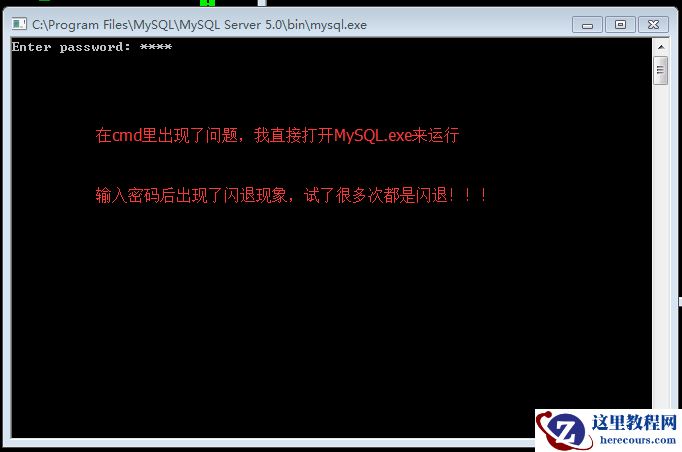 3.打开MySQL 5.0Command Line Client,输入密码root,没有出现闪退,问题解决。