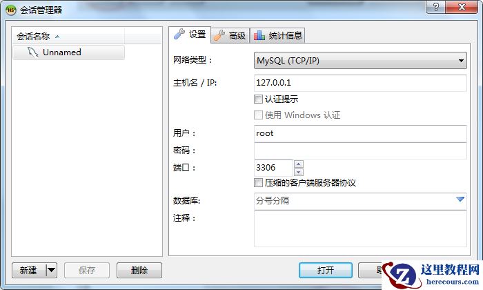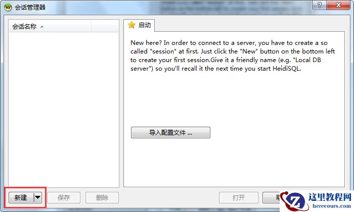 点击HeidiSQL,点击新建按钮。新建一个会话。