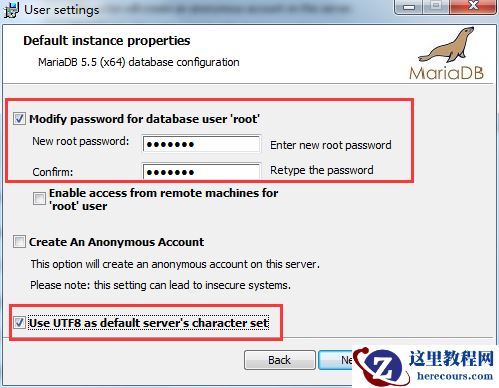 为root用户设置登录密码,将UTF8设为默认字符集,因为经常要使用到中文。