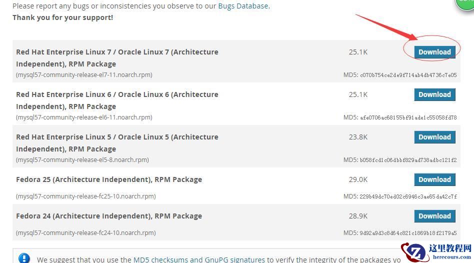进入mysql官网获取RPM包下载地址