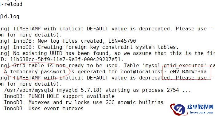 mysql安装完成之后,在/var/log/mysqld.log文件中给root生成了一个临时的默认密码。