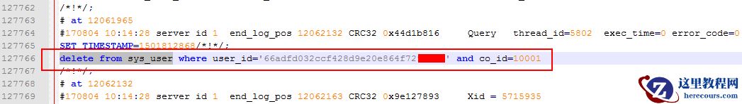 最后定位删除销售C的动作在127766行(虽然日志记录行数比较多,但是删除用户的动作比较少,所以好排查)